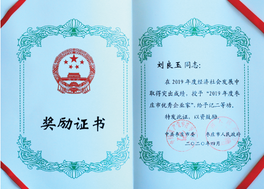 集團(tuán)董事長(zhǎng)劉良玉榮膺“2019年度棗莊市企業(yè)家”稱號(hào)