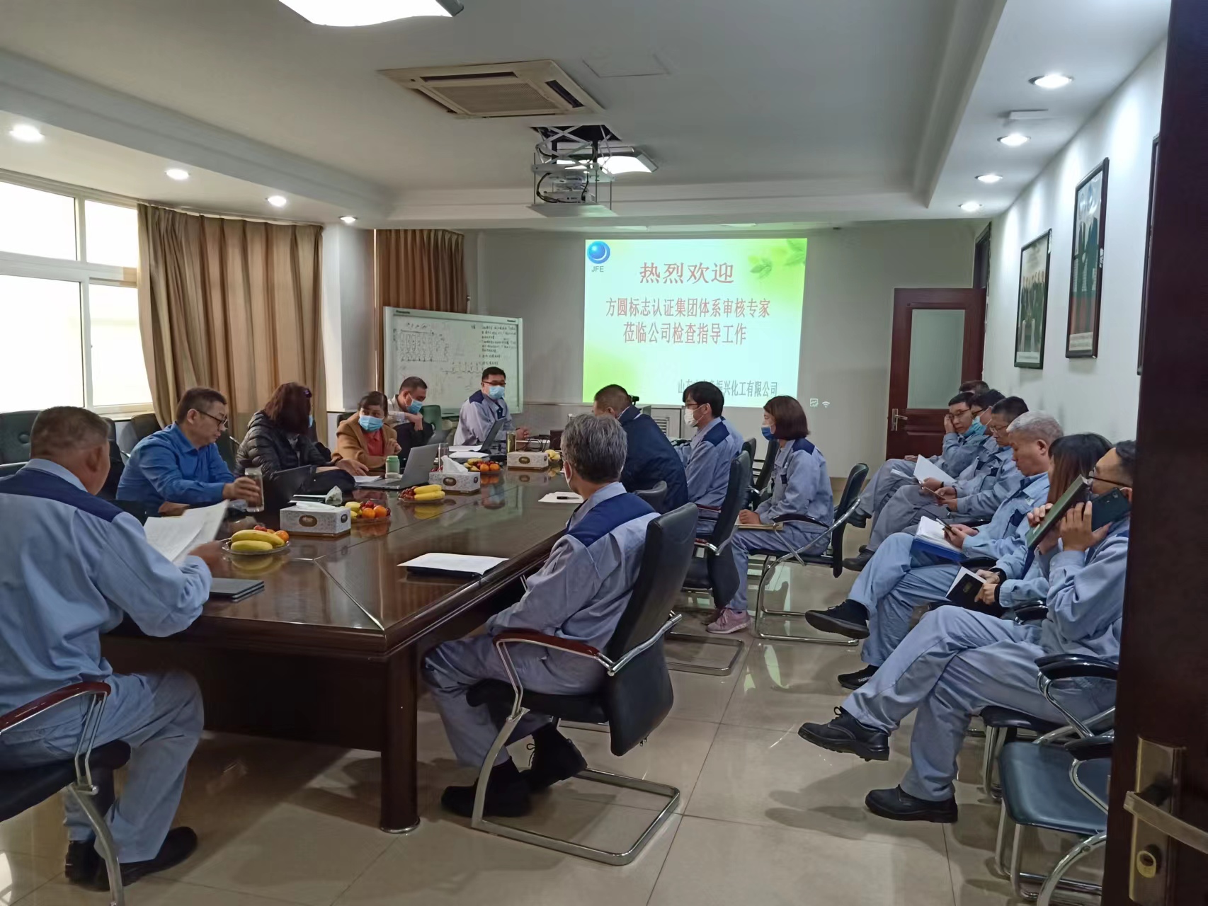 11月11日上午,方圓認(rèn)證集團山東分公司委派四位專家對山東杰富意公司質(zhì)量、環(huán)境、職業(yè)健康安 全以及能源“四體系”進(jìn)行審核。歷經(jīng)3天的督查審核,公司順利通過ISO四體系認(rèn)證。公司總經(jīng)理竹內(nèi)敦人、副總經(jīng)理夏濰平、各部門負(fù)責(zé)人及內(nèi)審員等參加首(末)次會議。
