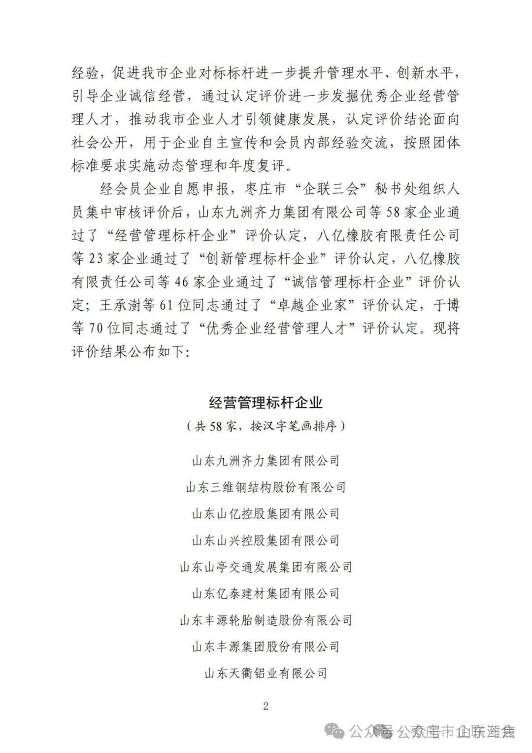 近日,棗莊市企業(yè)聯(lián)合會、棗莊市企業(yè)家協(xié)會、棗莊市工業(yè)聯(lián)合會發(fā)布《關于2024年管理標桿企業(yè)及其優(yōu) 秀管理者認定評價結果的通知》,山東濰焦集團薛城能源有限公司、棗莊杰富意振興化工有限公司榮獲2024年度“經營管理標桿企業(yè)”稱號。這是對兩公司經營管理水平、管理創(chuàng)新能力等方面的充分肯定和認可。