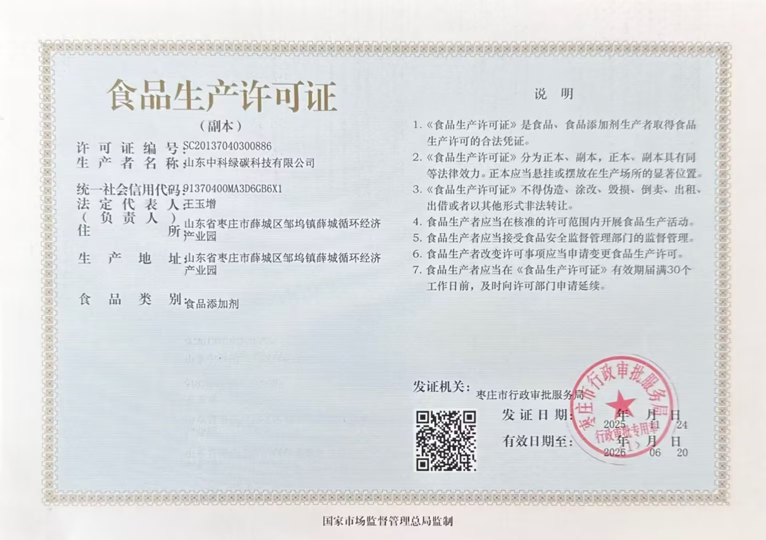 山東中科綠碳科技有限公司系上海中科綠碳化工科技有限公司全資子公司,由山東濰焦控股集團有限公司、上海中科奧凱企業(yè)管理有限公司共同出資組建。公司設有院士工作站,并依托中國科學院上海有機化學研究所自主研發(fā)的專有技術,專注于食品添加劑生產(chǎn)、綠色節(jié)能化學、化工新技術開發(fā)及化學工程項目工藝包研制,是國內(nèi)以食品級碳酸氫銨生產(chǎn)、中試放大、技術服務為核心業(yè)務的國家級高新技術企業(yè)。 公司注冊資金 9800 萬元,占地面積約77 畝,CO2資源化利用合成食品添加劑產(chǎn)能15萬噸/年(原廠址濰坊振興焦化有限公司),通過回收園區(qū)內(nèi)排放的CO2實現(xiàn)資源化利用,產(chǎn)品碳酸氫銨純度高、質(zhì)量優(yōu)良,每年可減少3000萬標方溫室氣體排放(相當于3萬輛家用轎車年CO2排放量),具有突出的社會效益與經(jīng)濟效益。